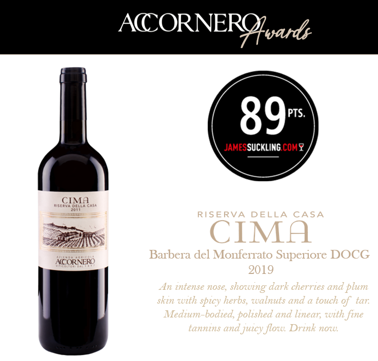 La nostra Cima Barbera del Monferrato Superiore DOCG 2019 è stata degustata e valutata dal grande esperto James Suckling che gli ha attribuito il valore di 89 punti.